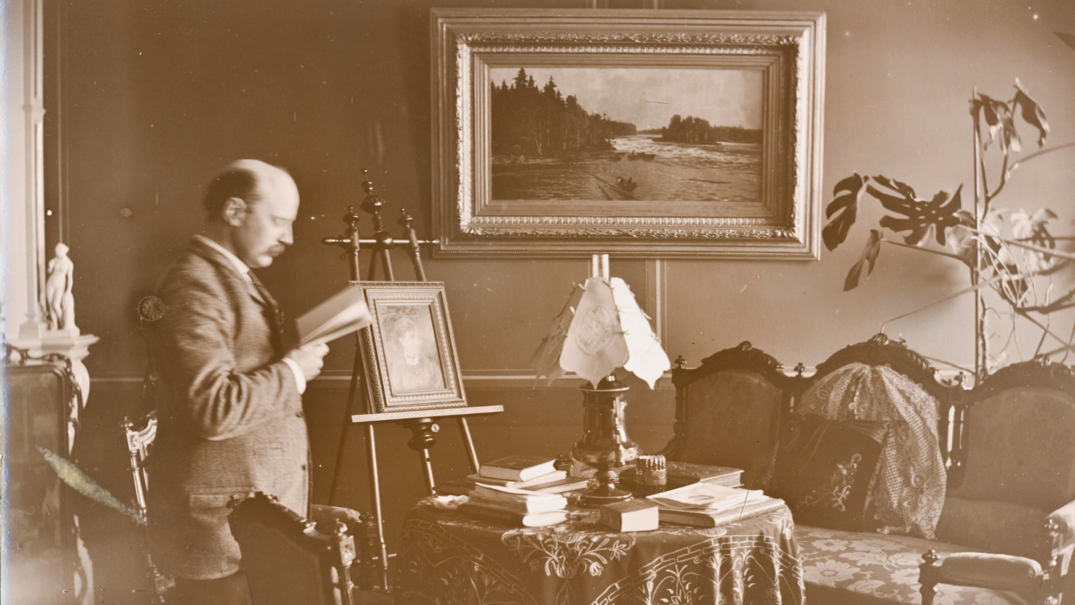 Bild: Axel Antell i sitt hem på Boulevarden 6, 1891. Okänd upphovsman. SLS/Alma Skogs arkiv.