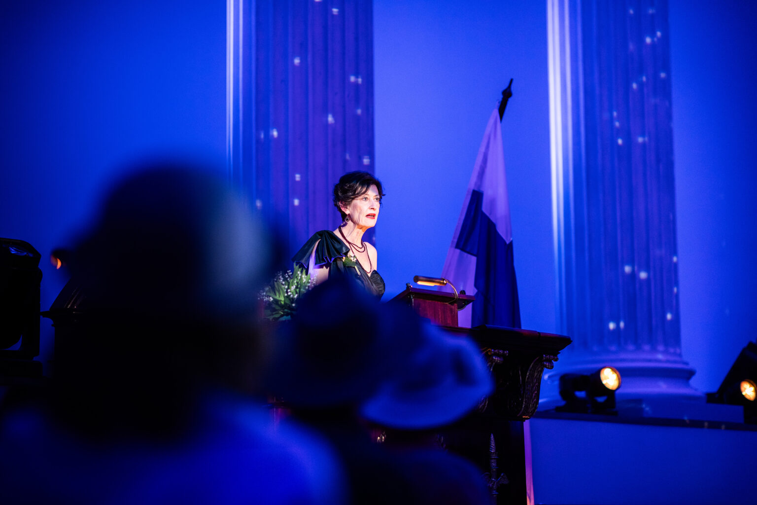 Under SLS årshögtid i Helsingfors universitets solennitetssal den 5 februari 2025 höll professor Kristina Malmio festföredraget under rubriken Den finlandssvenska romanens kraft.